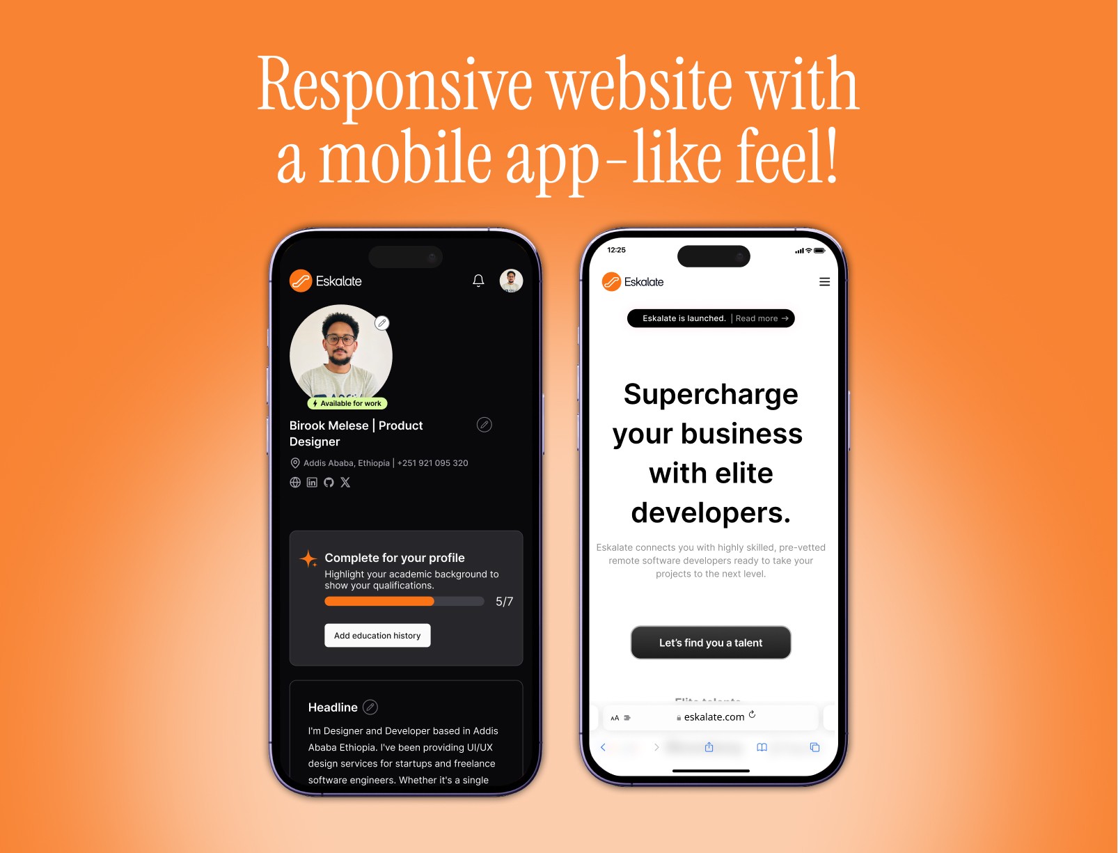 Eskalate features a clean and responsive design, providing users with an experience akin to using a mobile application. The mobile view is optimized to ensure seamless navigation and interaction, closely resembling the feel of a native app.