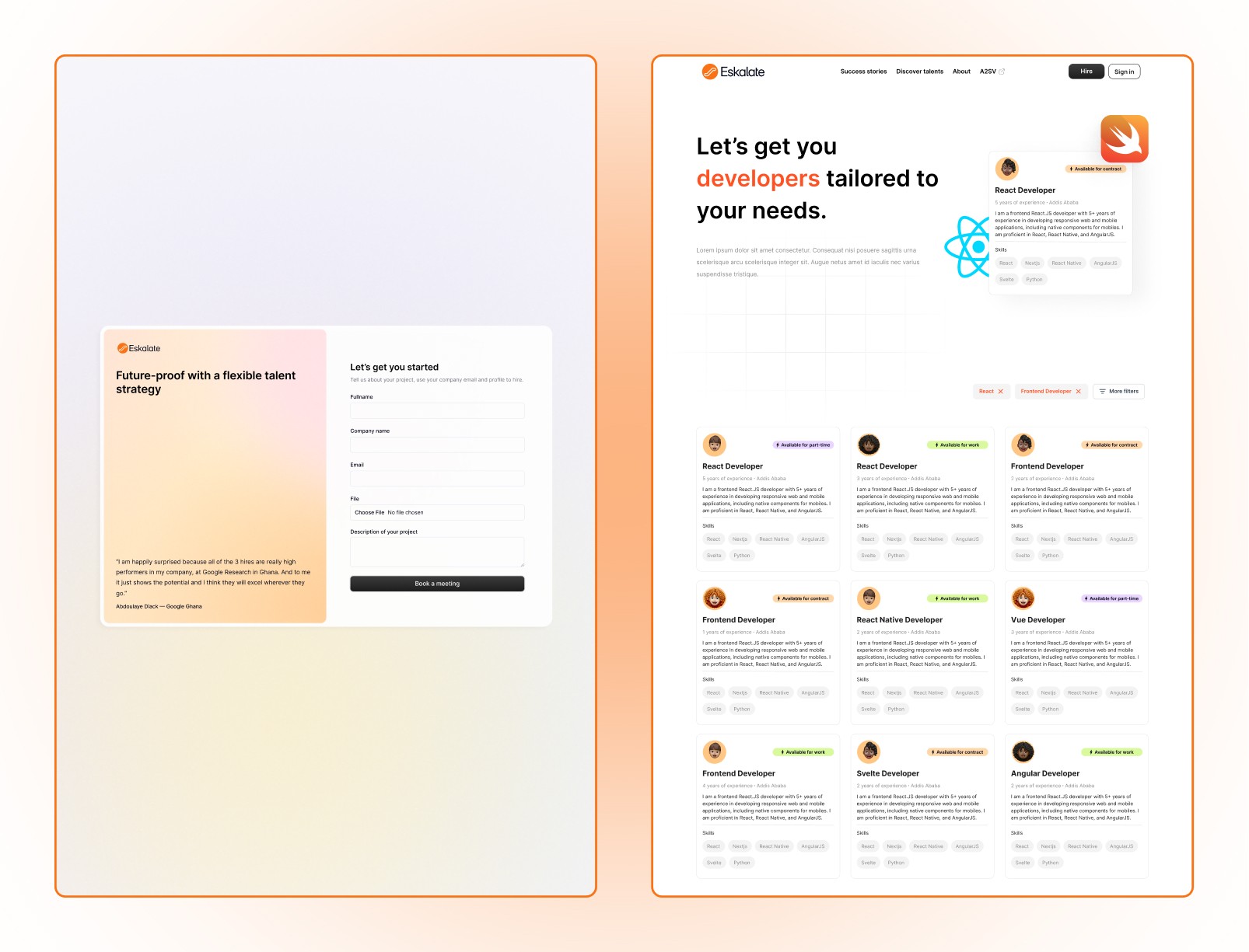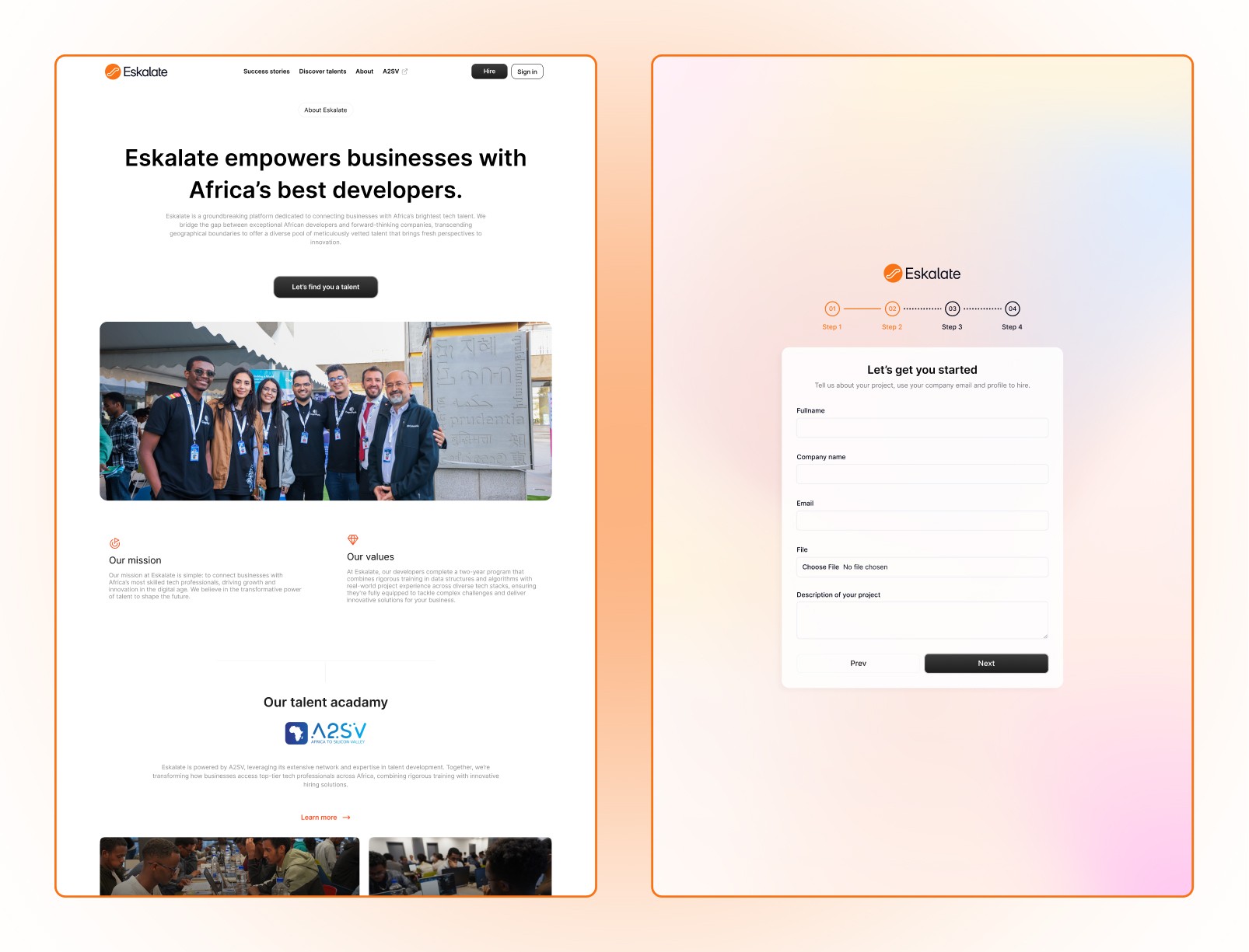 Eskalate is a talent-matching platform that connects highly skilled developers with individuals and companies seeking tech expertise. It streamlines the hiring process by enabling businesses to find, evaluate, and connect with top tech talent efficiently. Developers can register, showcase their portfolios, and receive tailored job matches. An operator portal ensures smooth coordination between talent and opportunities
